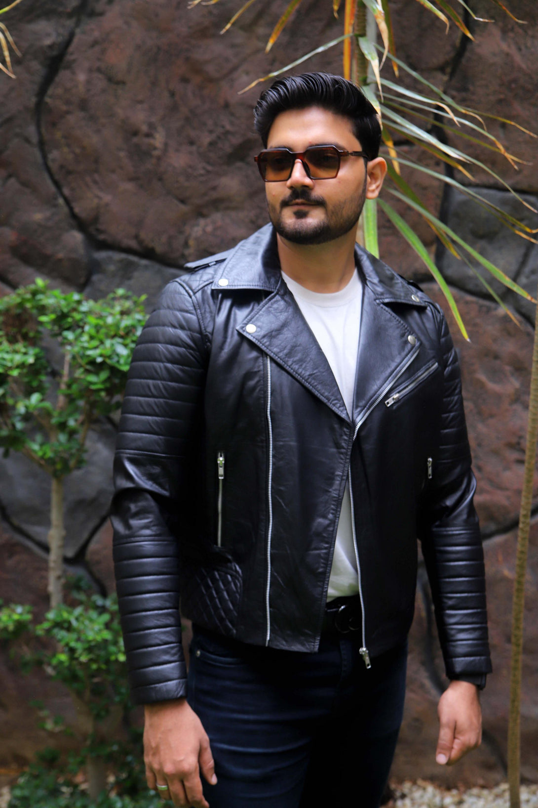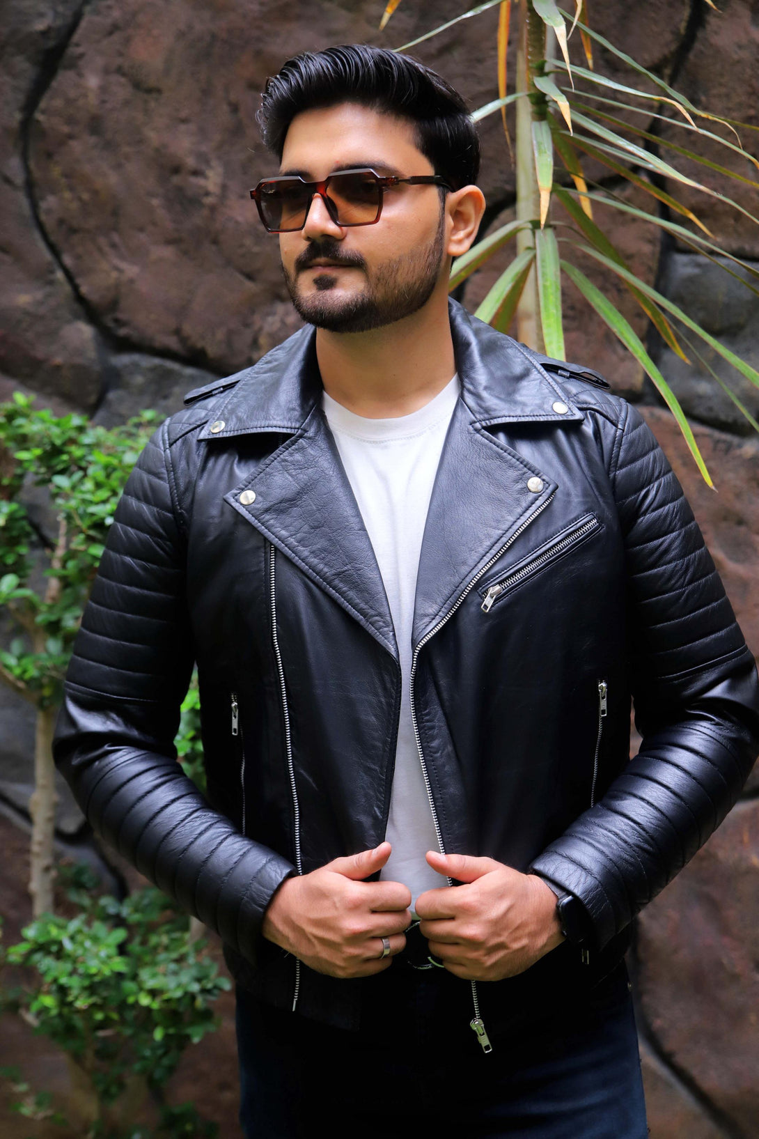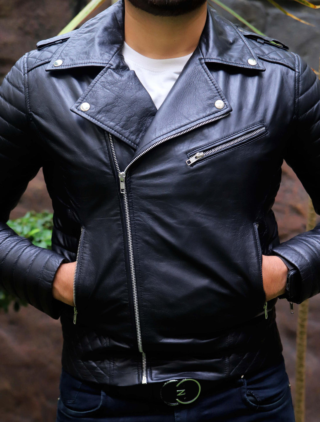 This is the quintessential motorcycle jacket, built with genuine black leather and all the authentic details. The thick leather and durable hardware make this piece instantly classic and designed to be worn for years. It's the perfect statement jacket for anyone who values a bold, timeless look.
