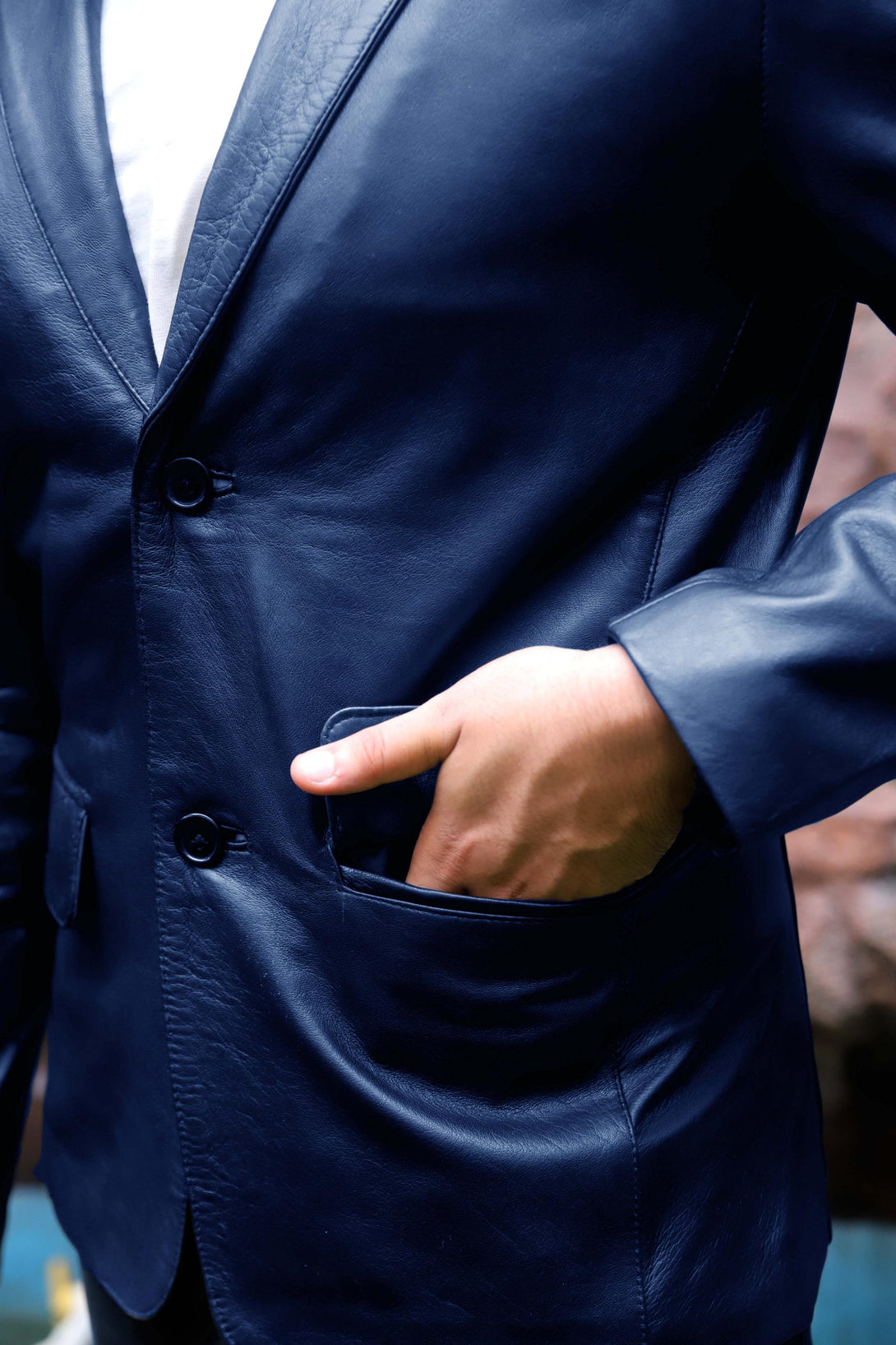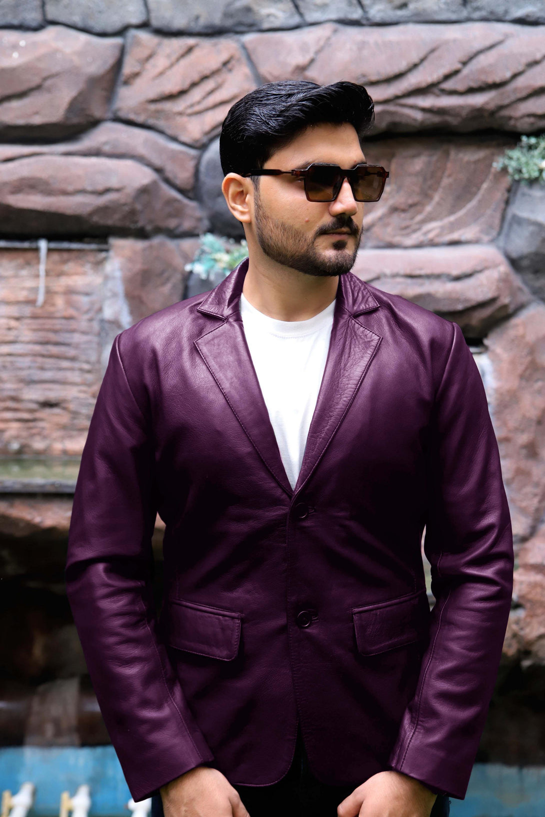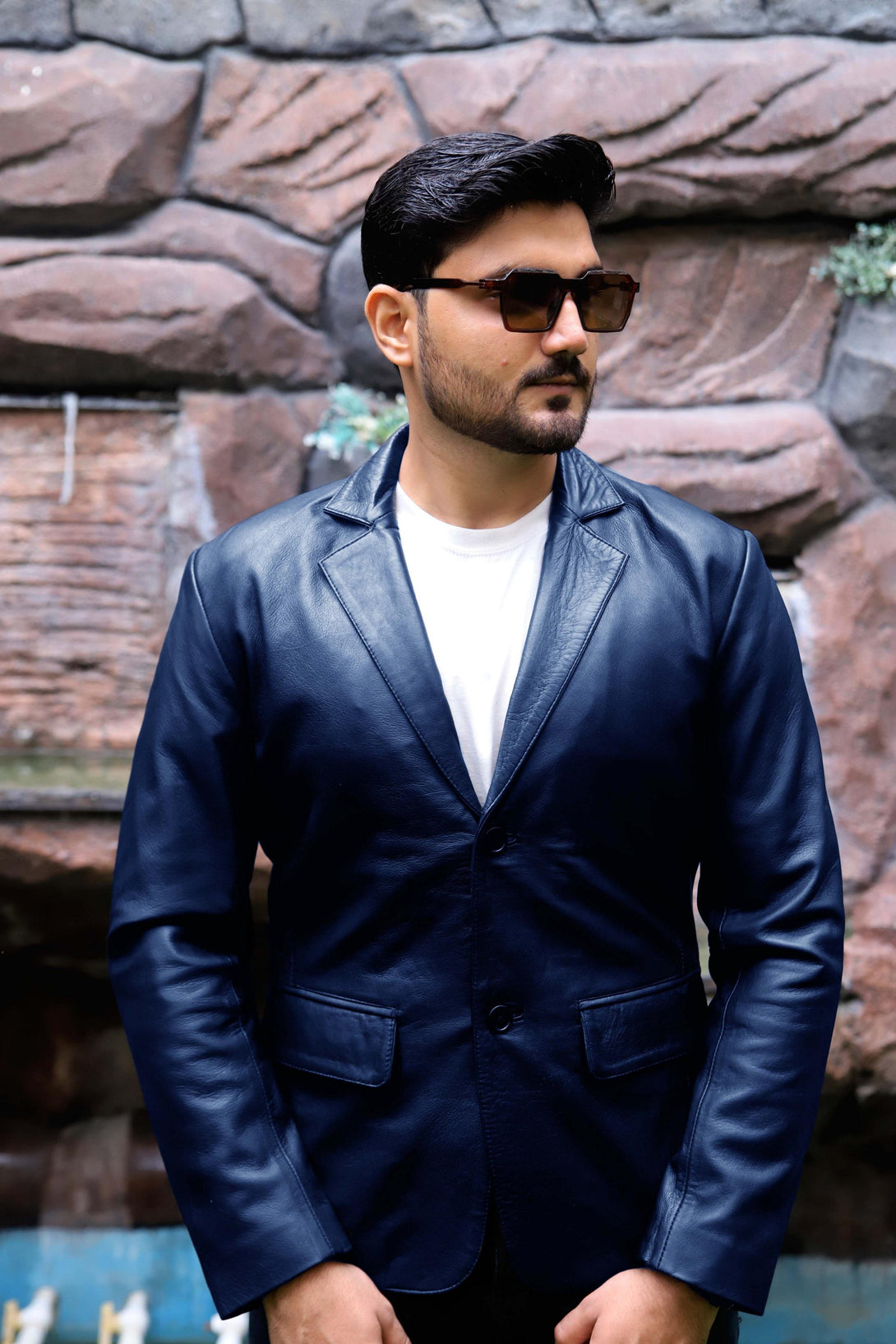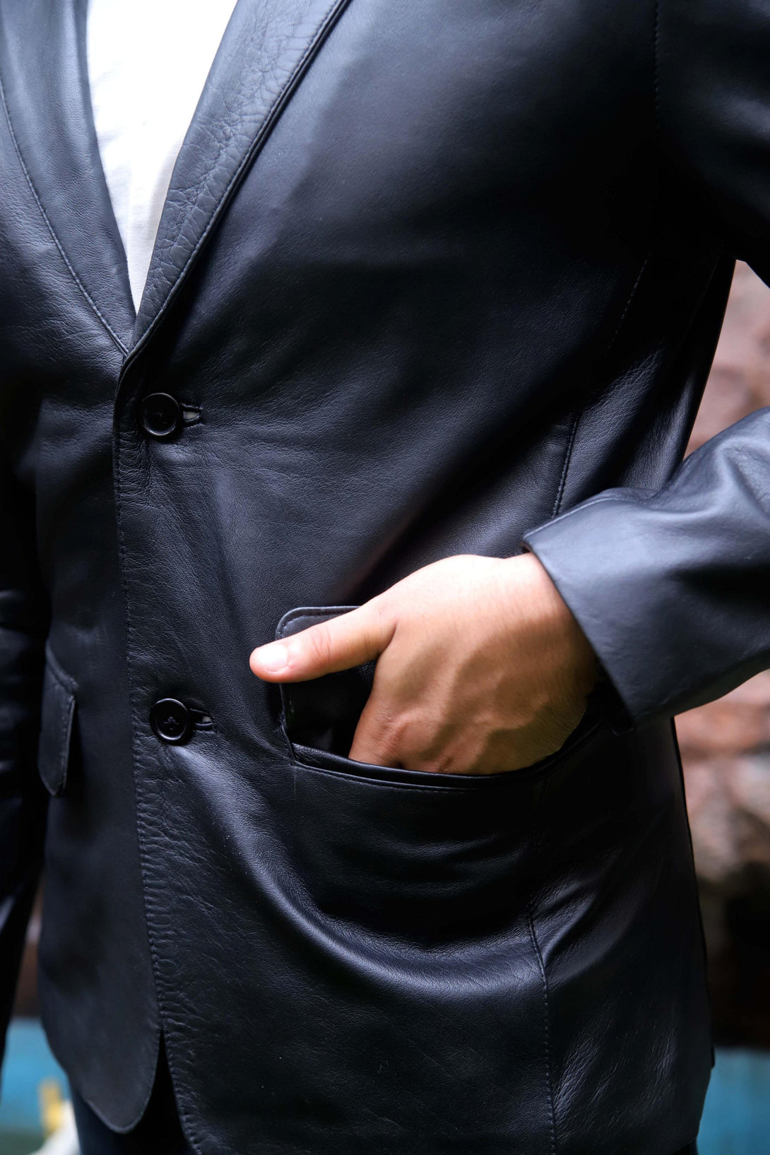 This Two Button Leather Blazer offers the classic structure of a blazer combined with the sharp look and feel of genuine leather. It's the perfect way to dress up any casual outfit or add a sophisticated edge for semi-formal occasions, giving you a distinct alternative to a standard sport coat.