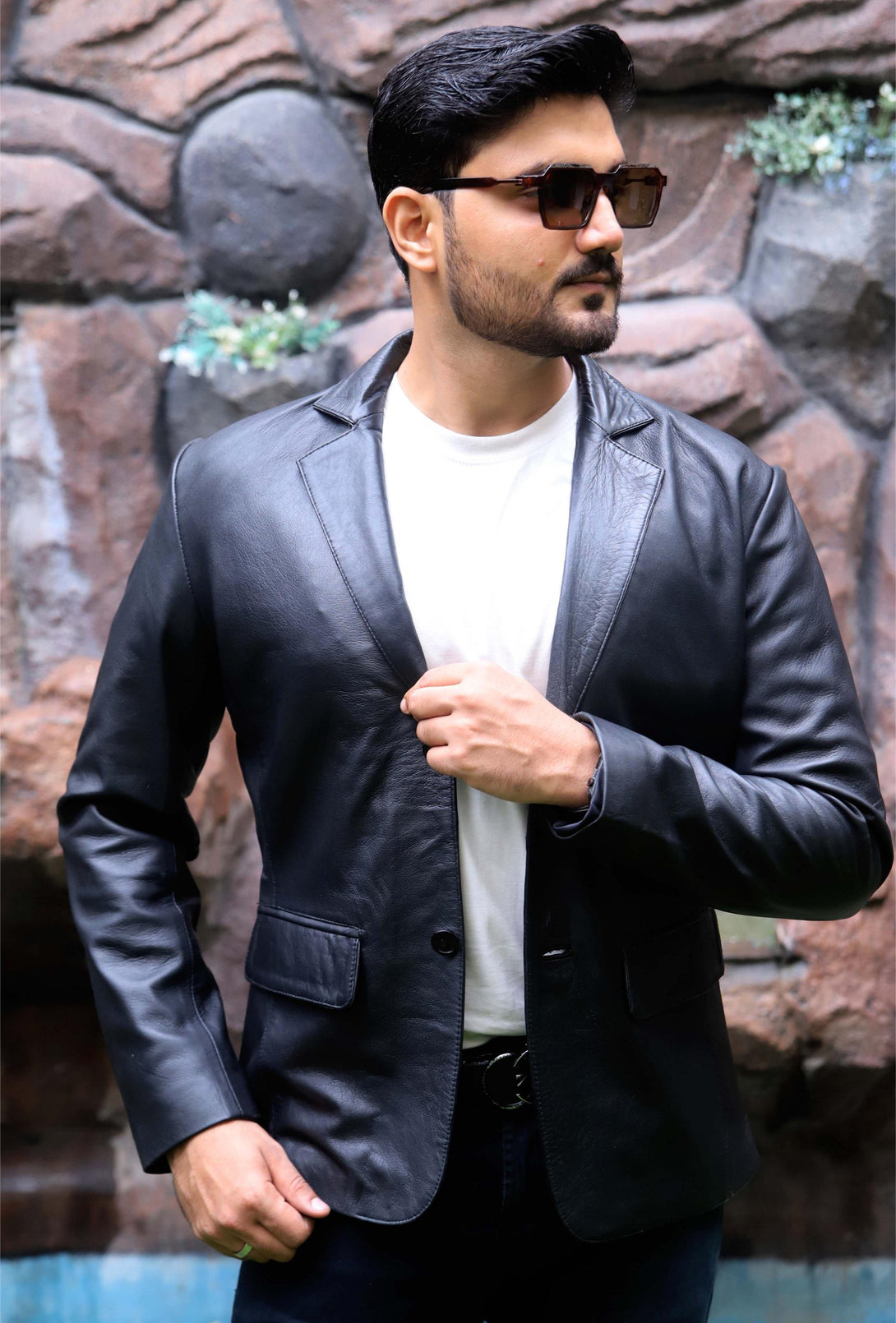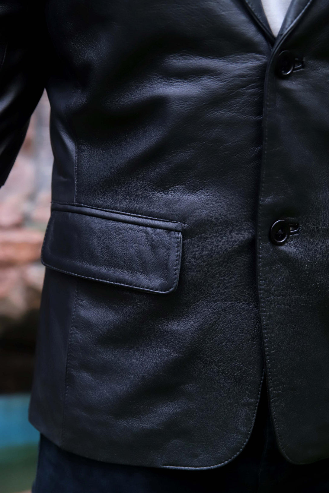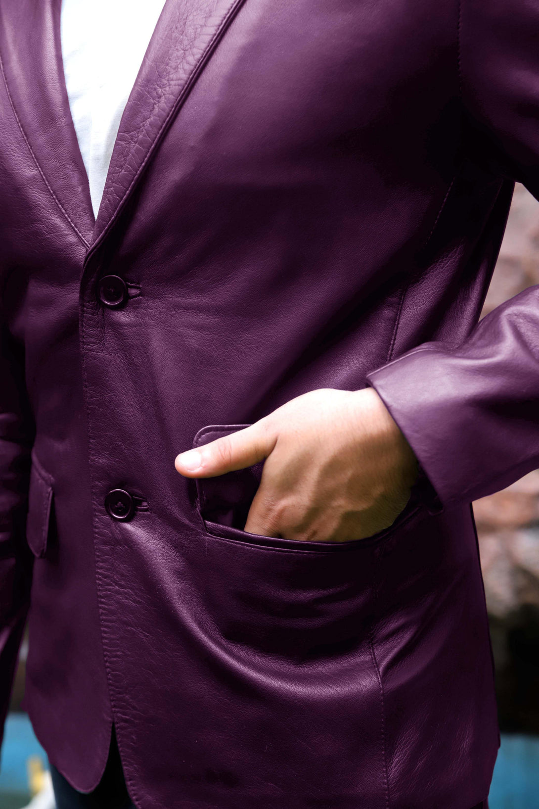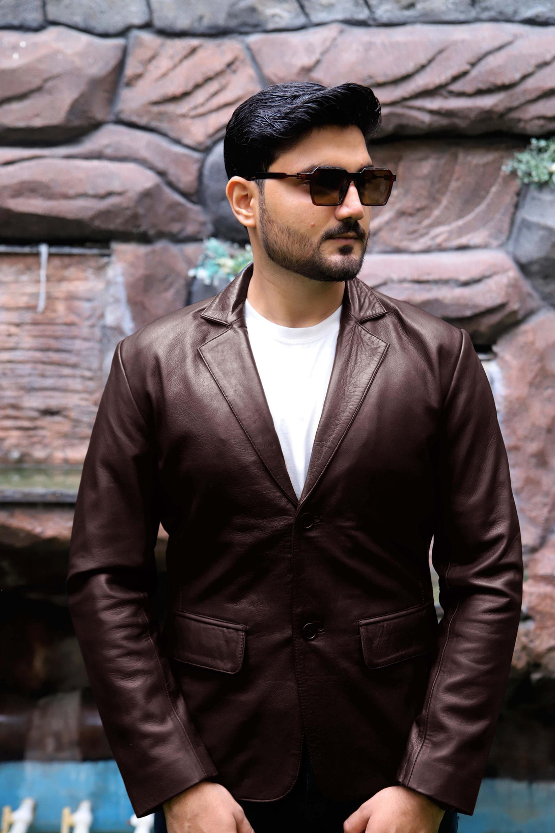 This Two Button Leather Blazer offers the classic structure of a blazer combined with the sharp look and feel of genuine leather. It's the perfect way to dress up any casual outfit or add a sophisticated edge for semi-formal occasions, giving you a distinct alternative to a standard sport coat.