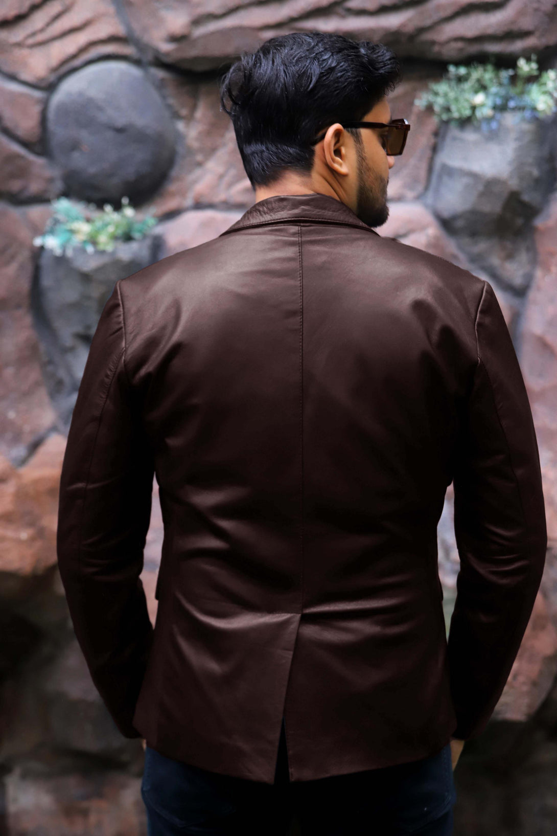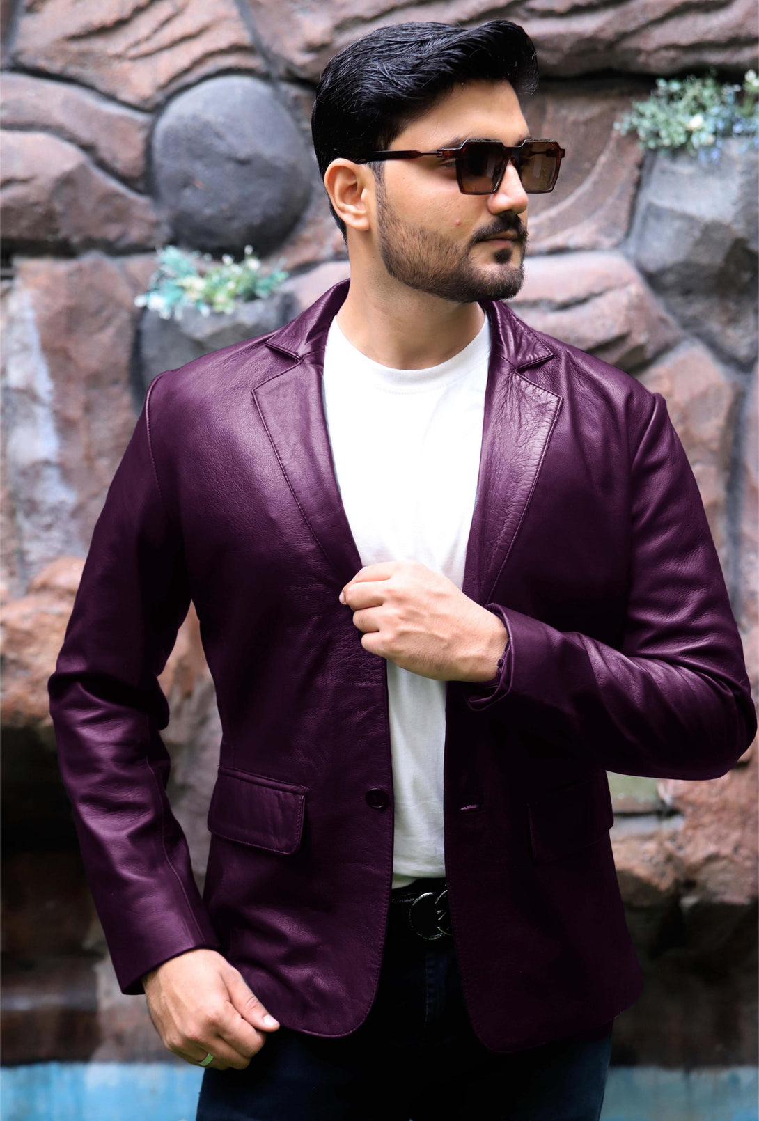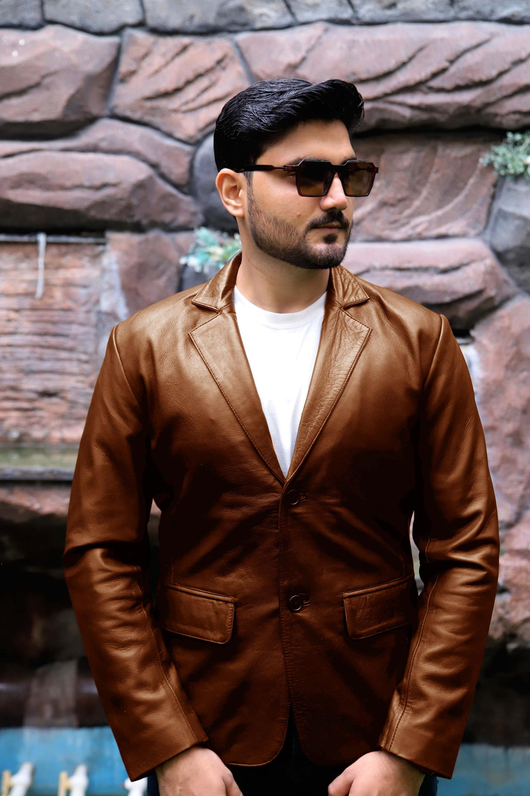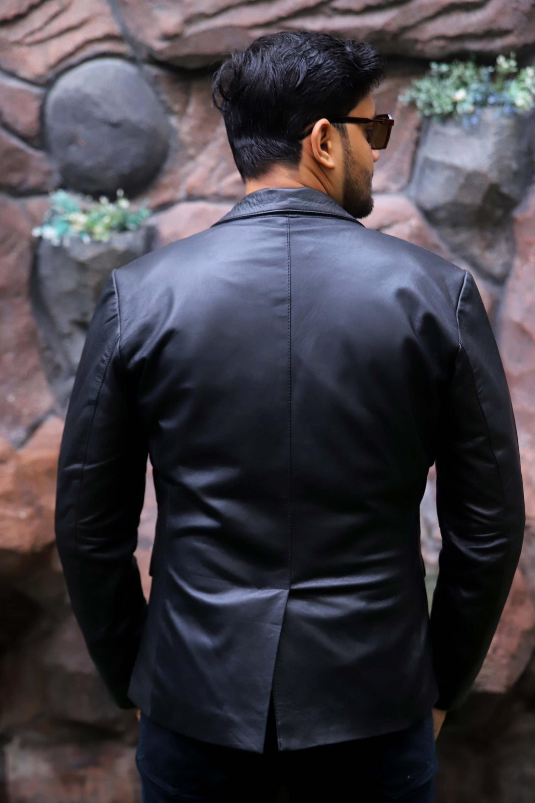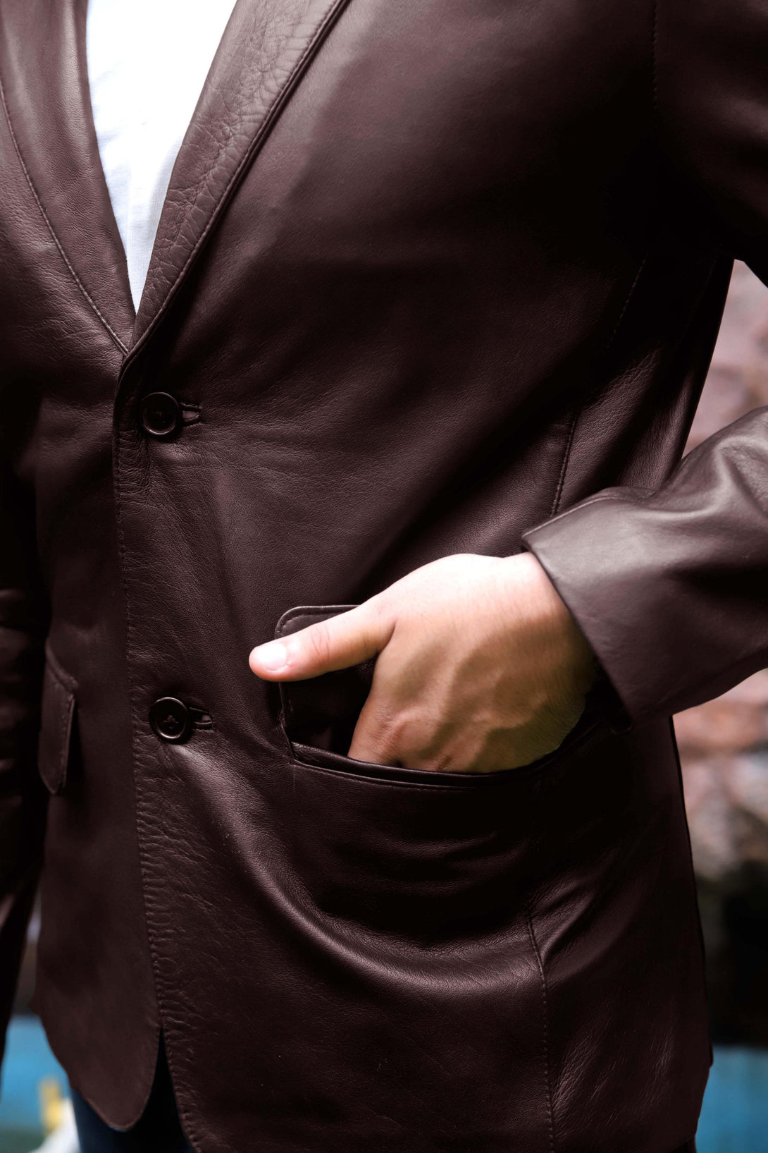 This Two Button Leather Blazer offers the classic structure of a blazer combined with the sharp look and feel of genuine leather. It's the perfect way to dress up any casual outfit or add a sophisticated edge for semi-formal occasions, giving you a distinct alternative to a standard sport coat.