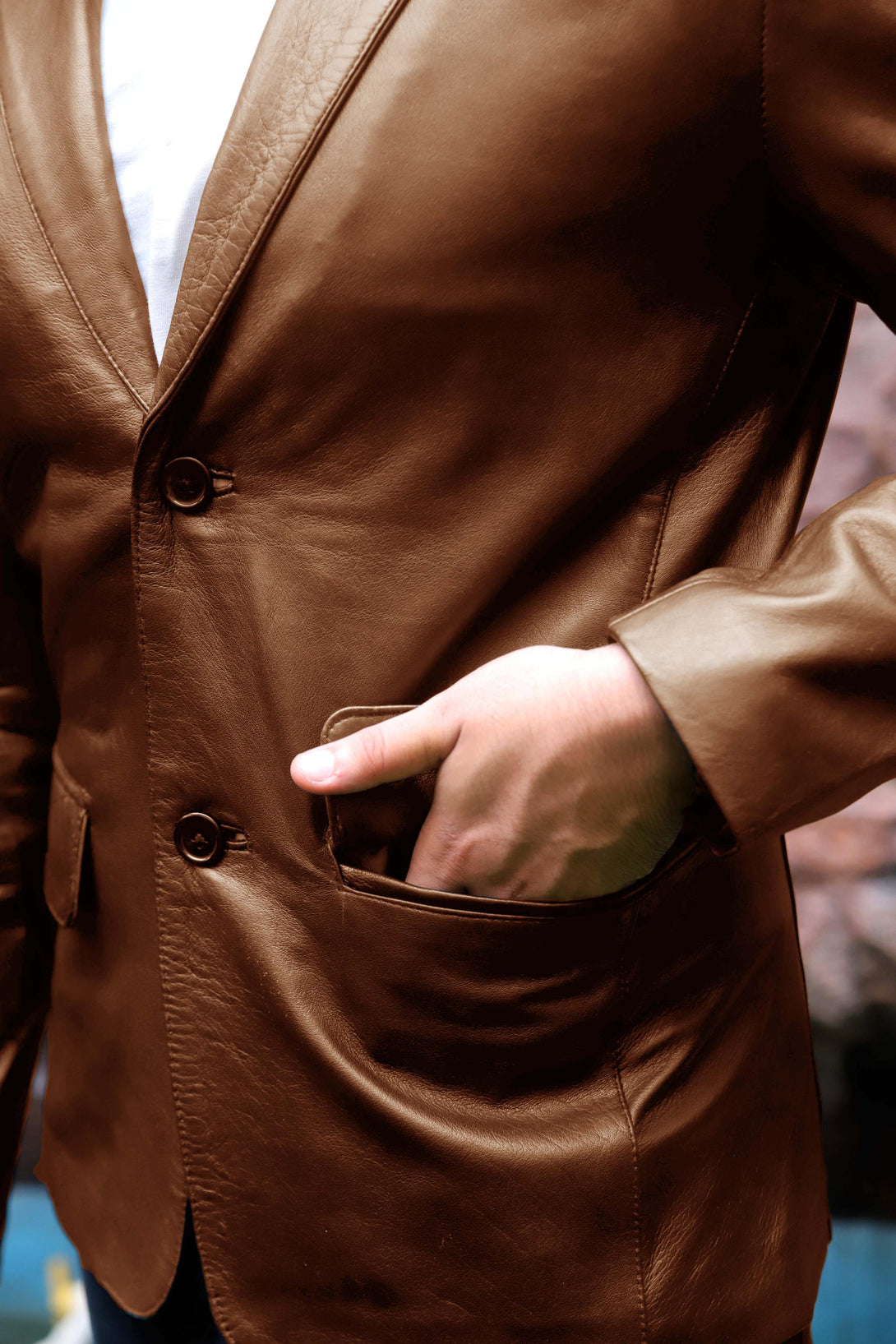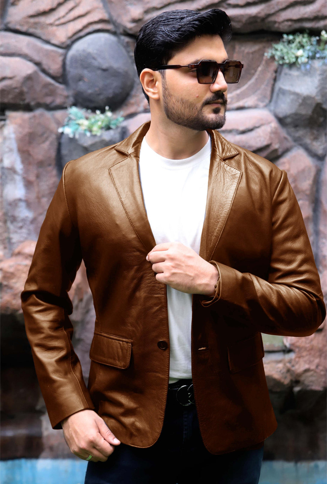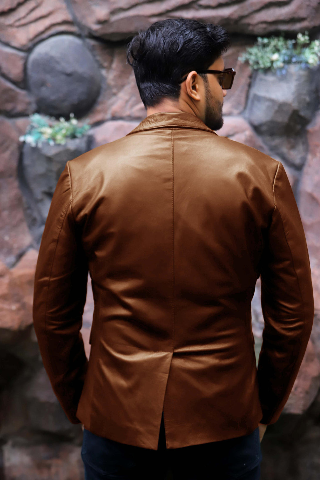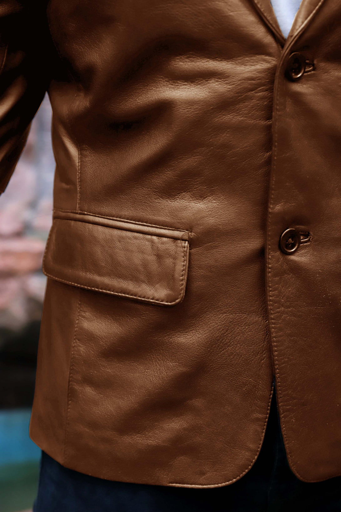 This Two Button Leather Blazer offers the classic structure of a blazer combined with the sharp look and feel of genuine leather. It's the perfect way to dress up any casual outfit or add a sophisticated edge for semi-formal occasions, giving you a distinct alternative to a standard sport coat.