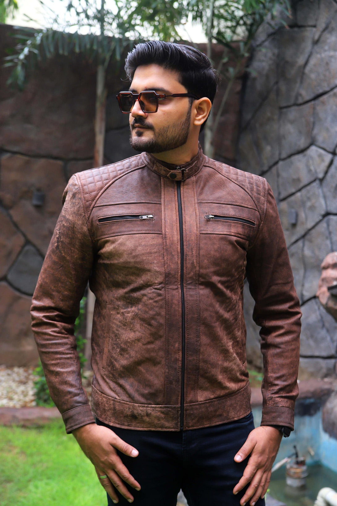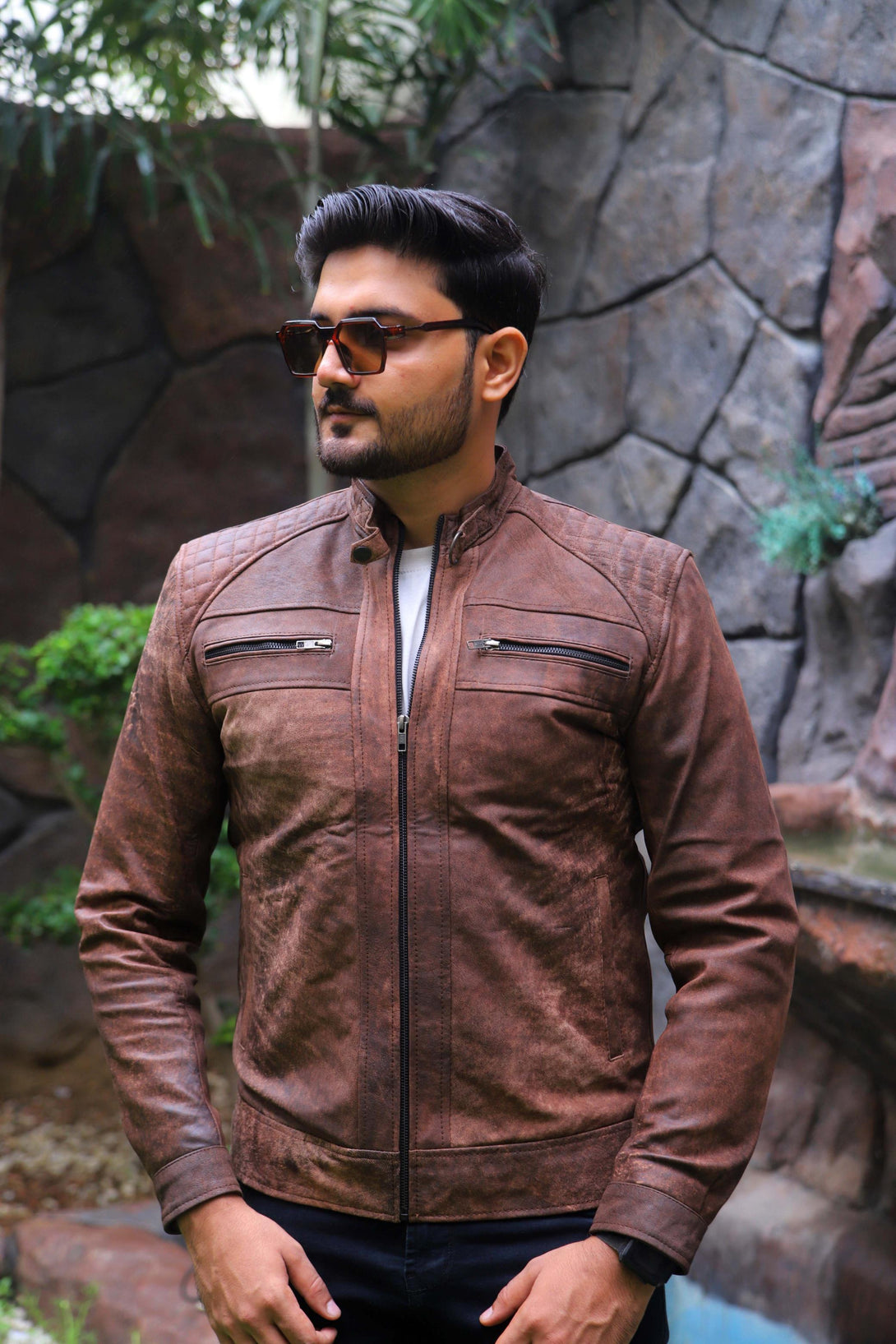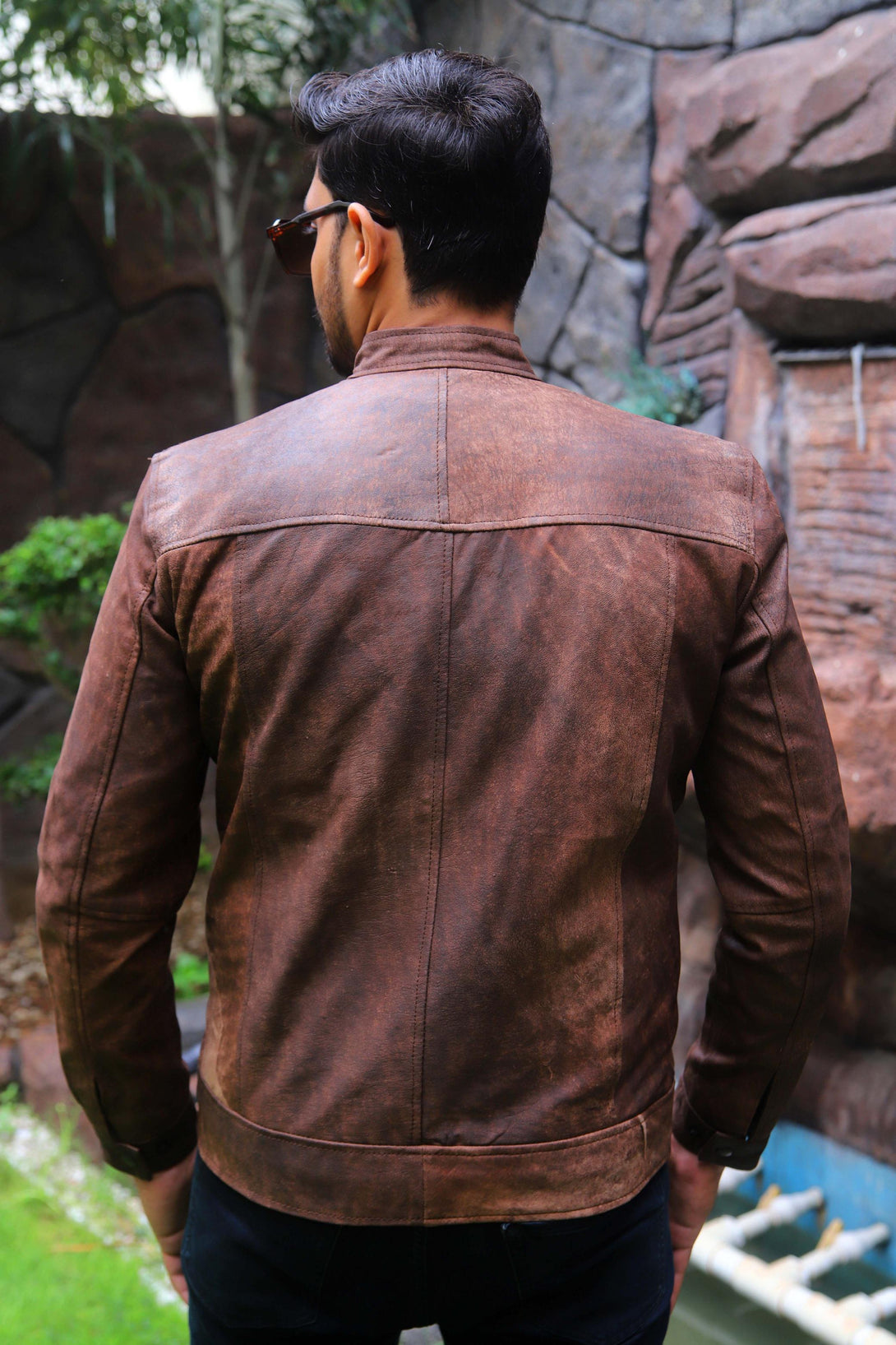 This jacket delivers a look that is both timeless and instantly cool. It's made from genuine leather in a rich brown color with a heavily distressed finish, giving it the authentic, worn-in character of a jacket you’ve owned for years.