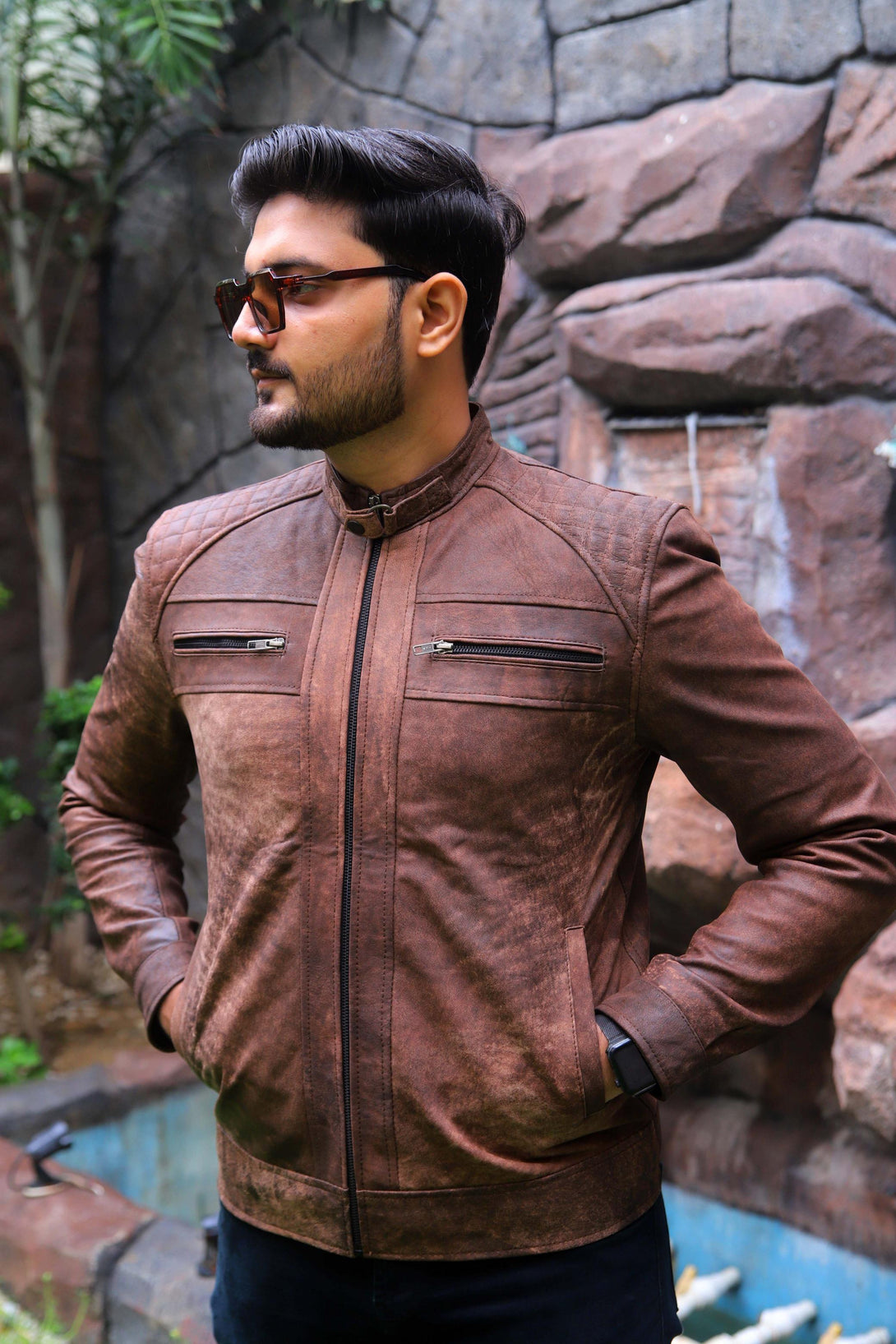 The style features classic diamond-quilted stitching across the shoulders, a detail that adds texture and a rugged, biker-inspired edge. It has a clean stand-up collar with a snap button and a straightforward vertical front zip. For functionality, you get two zippered chest pockets for secure storage and two slash side pockets for your hands or quick-access items. The fit is tailored to look sharp, making it an easy favorite for daily wear.
