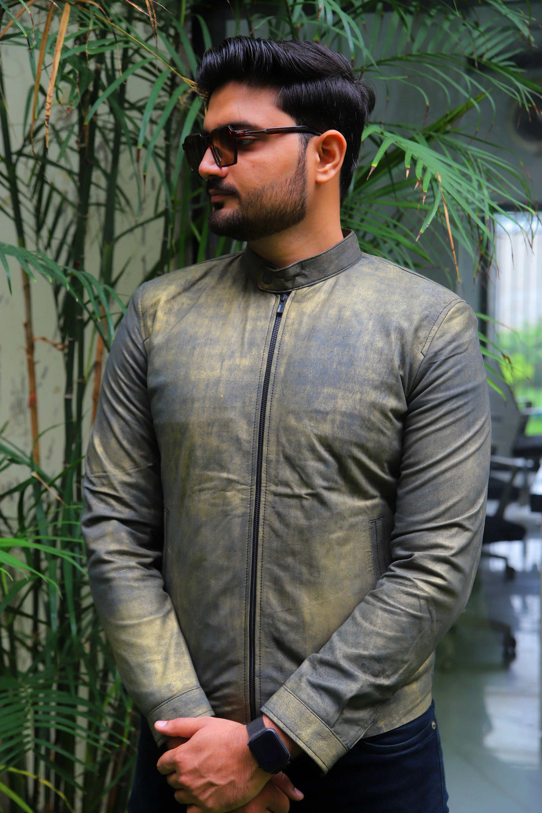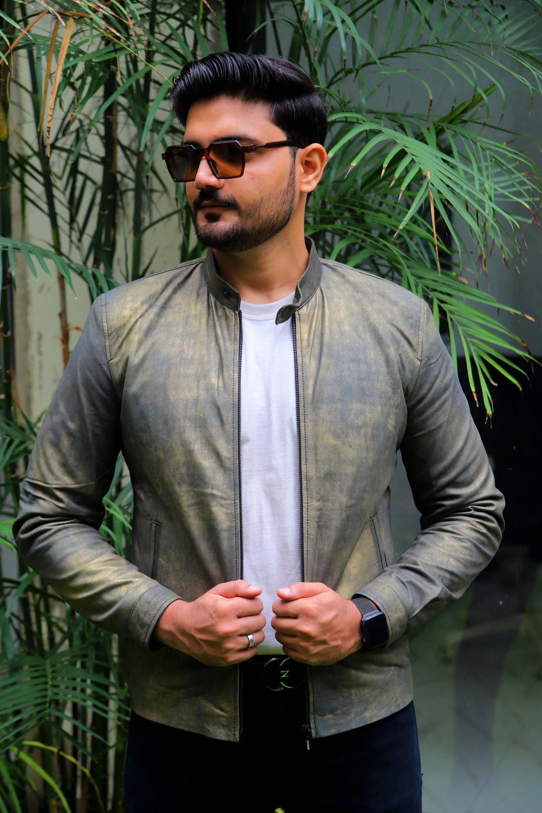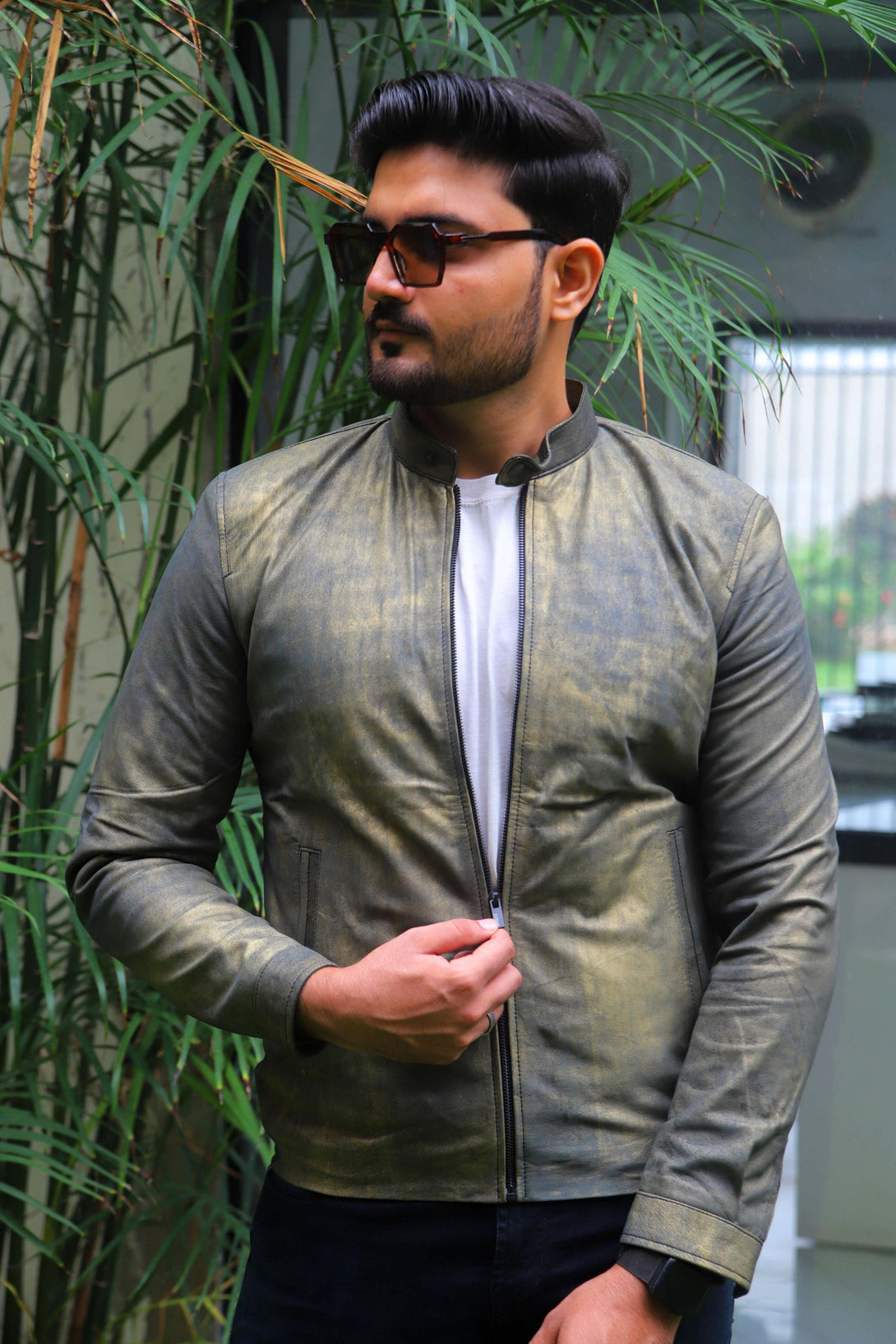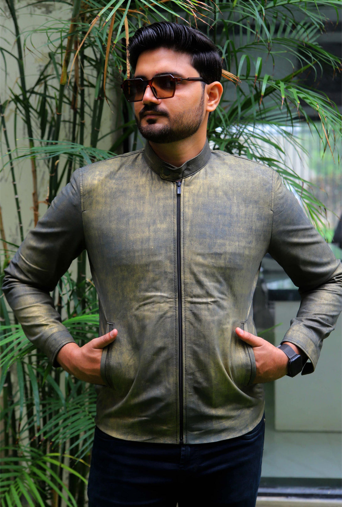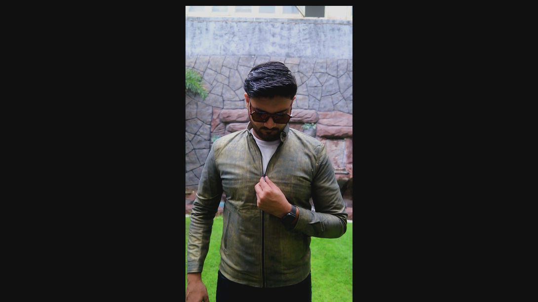 This jacket is all about its unique finish. It’s a slim-fit piece made from genuine leather that features a distinctive, hand-rubbed or distressed treatment, giving it a cool vintage grey. This is the jacket to grab when you want a minimal design but maximum visual interest.